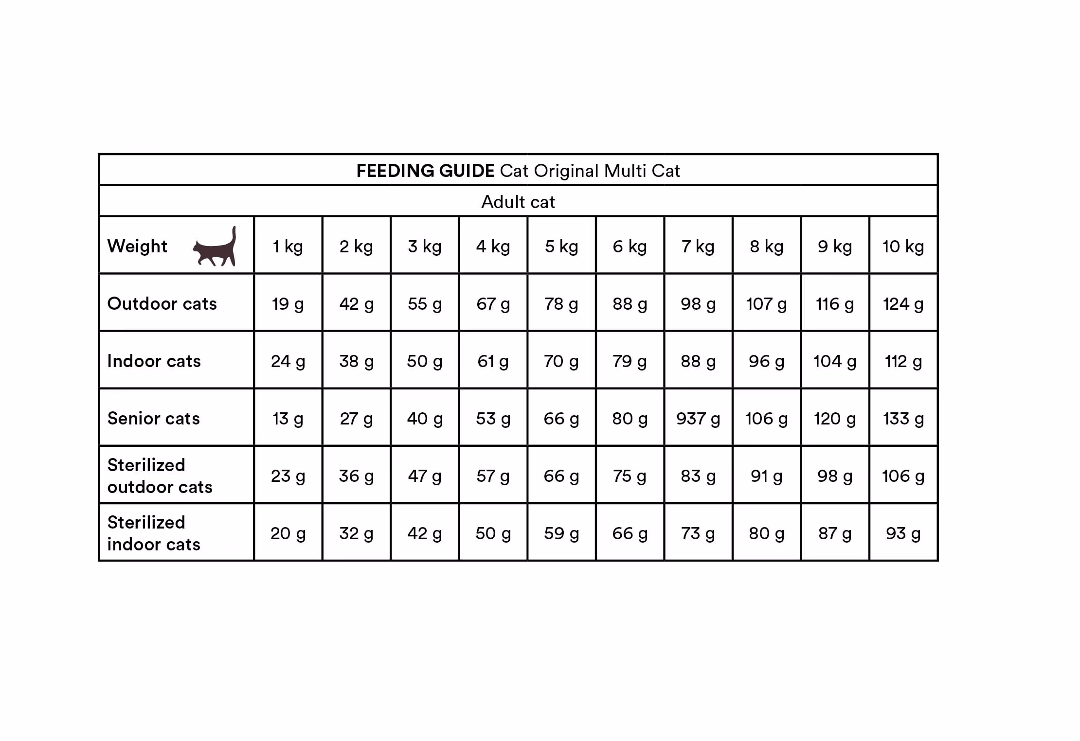 Every cat is unique, therefore the actual amount of food may vary depending on how old and active your cat is. Feed twice daily and make sure your cat always has access to fresh water. Store in a dry and cool place. Best before and batch number: see bottom of the bag.