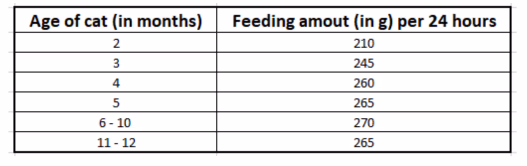 Store in a dry and cool place. Once opened, store in the refrigerator for up to 2 days. Feeding recommendations are based on the adult cat's final weight.