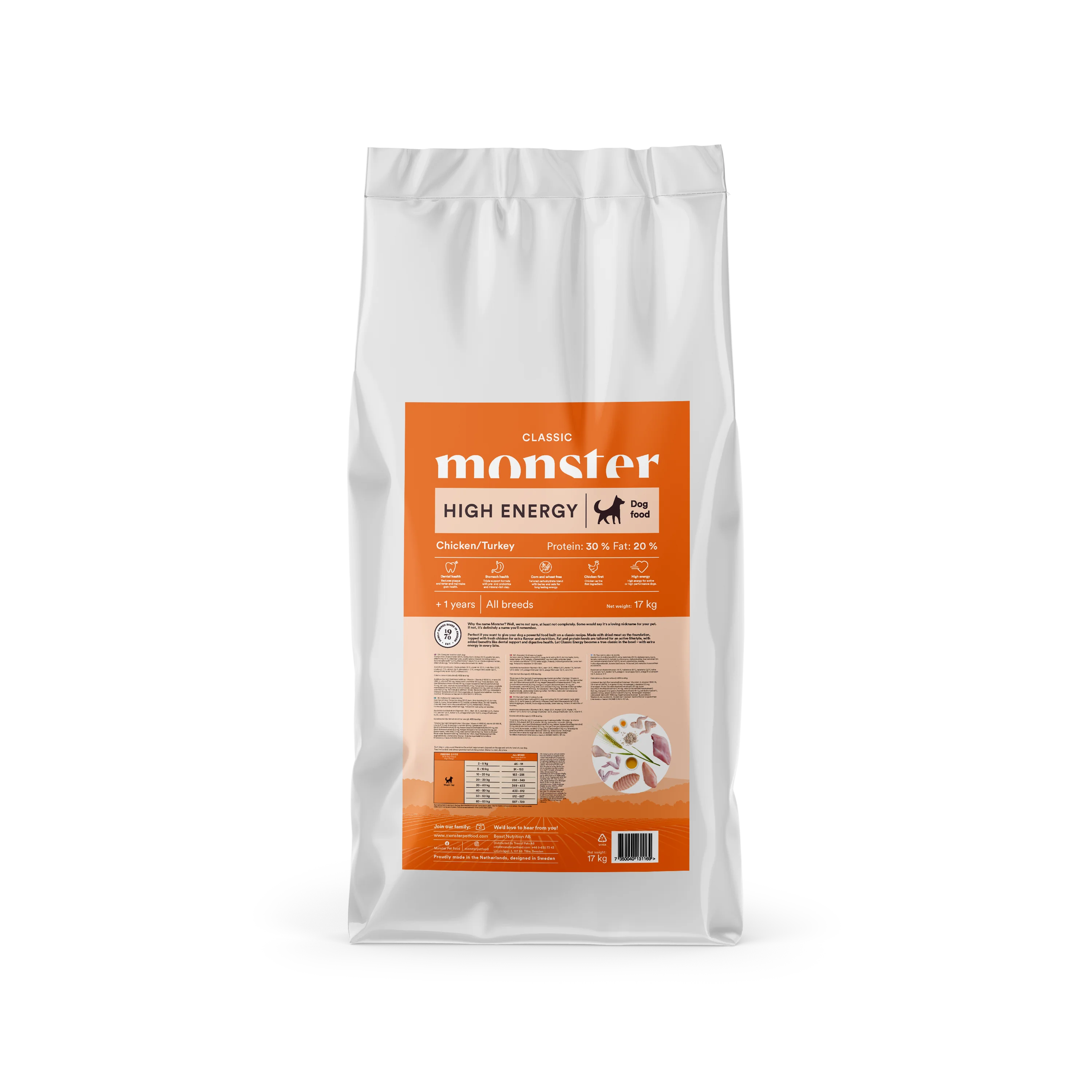 Wanted to switch to a lower fat food, currently have Monster white fish sensitive, and tested this instead. Nothing wrong with the food, my dog seems to think it's super tasty, but unfortunately the amount that comes out is enormous, when the dog needs to go to the toilet 4-5 times a day corresponding to 2 on the other food, it doesn't work.