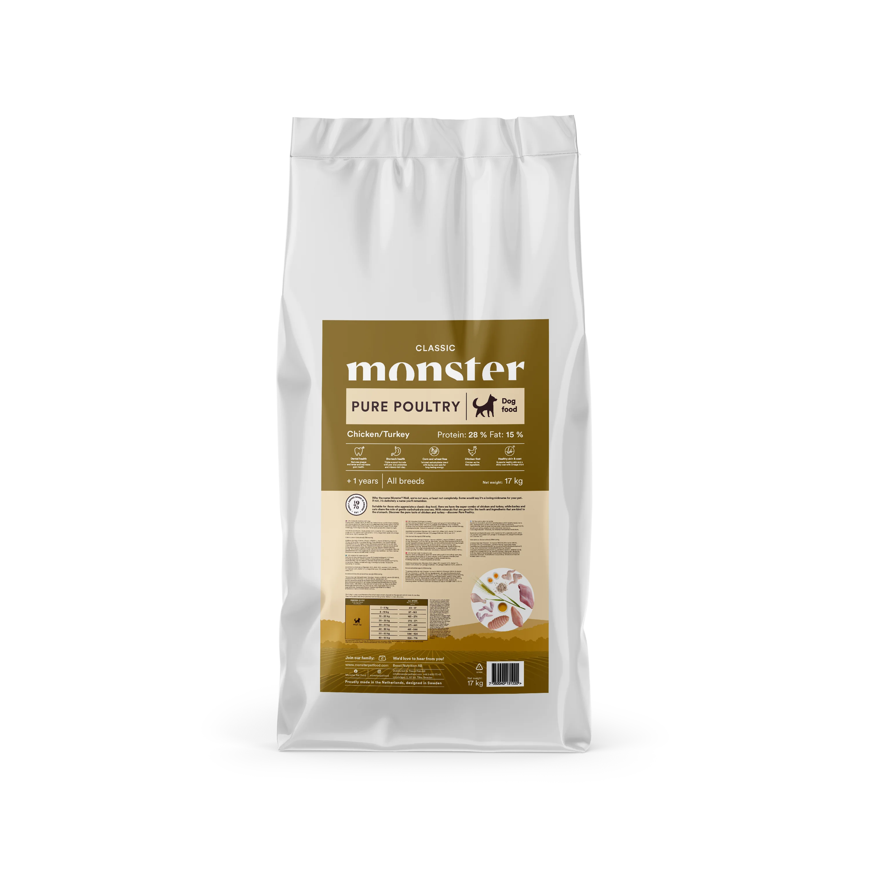 Suitable for dogs who appreciate classic dog food. Here we have the super combo of chicken and turkey, while barley and oats provide gentle sources of carbohydrates. With minerals that are good for teeth and ingredients that are gentle on the stomach. Discover the pure taste of chicken and turkey – discover Pure Poultry.