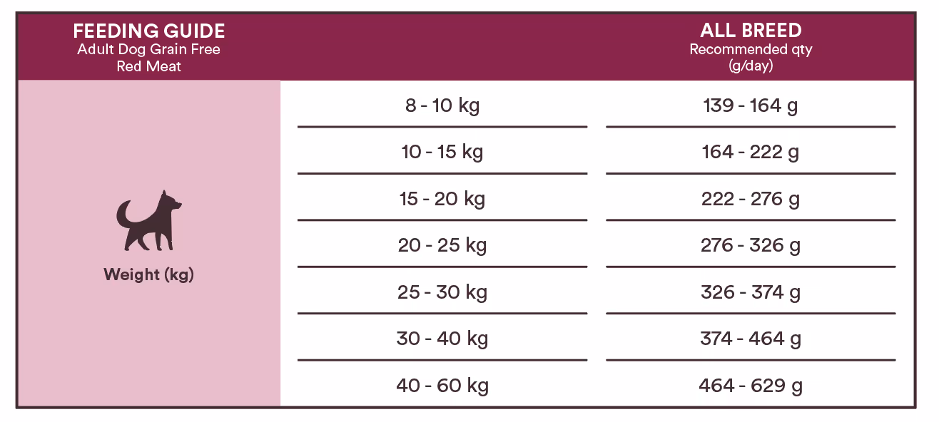 Each dog is unique and therefor the actual requirements depend on the age and activity level of your dog. Feed twice daily and always provide fresh drinking water. Store in a cool, dry place. Best before/batch: See bottom of the bag.